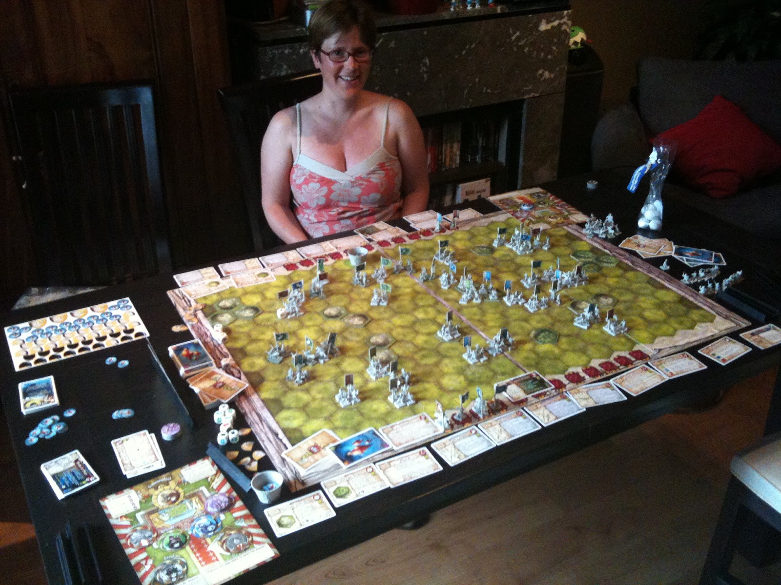 Notre nouvelle table de jeux: on peut y mettre un grand plateau ! Photo d'une partie de BattleLore